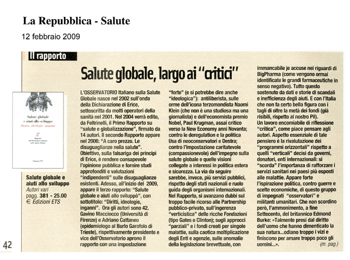 Tuttavia, al di là delle scelte che vengono fatte, occorre maturare una consapevolezza generale del problema, perché, come si legge in un editoriale della prestigiosa rivista Lancet, molte persone “stanno morendo perché coloro che hanno il potere di prevenire quelle morti hanno scelto di non agire”.
