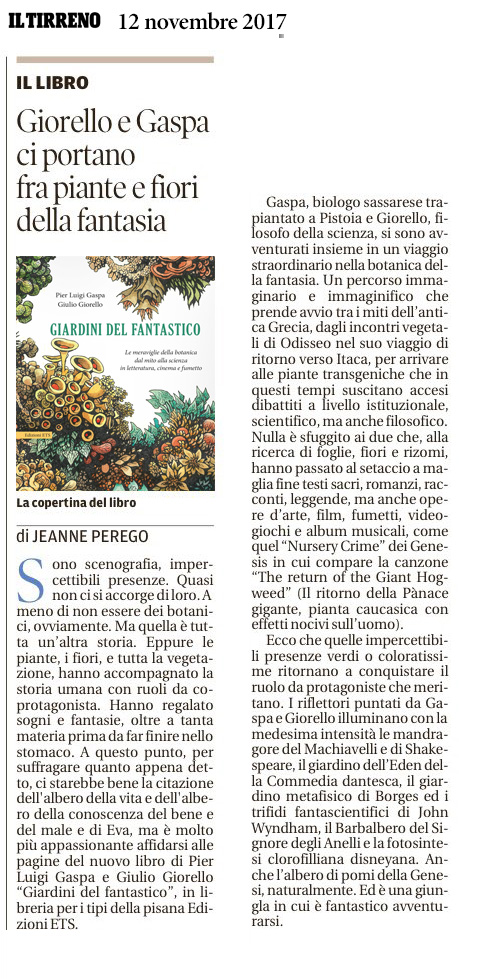 Un percorso immaginario e immaginifico che porta dal cinema ai fumetti e alla fantascienza, dai videogiochi ‘vegetali’ alle atmosfere da incubo di H. P. Lovecraft e perfino alla musica dei Genesis, Giardini del fantastico è un viaggio in dieci capitoli che ripercorre l’immagine, la simbologia e la scienza delle piante dall’antica Grecia a oggi e che si conclude con le proprietà straordinarie dei veri vegetali, dalla Venere acchiappamosche alla ‘pianta cadavere’ e con gli OGM, tutt’altro che “piante Frankenstein”. Per arrivare là dove nessun botanico è mai giunto prima!