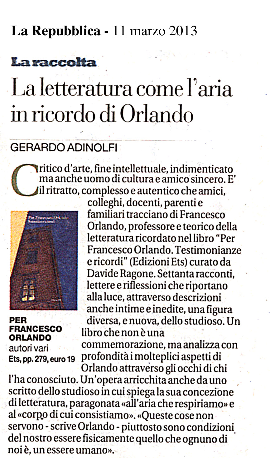 Con lo scritto "A che cosa serve la letteratura" di Francesco Orlando e la sua ultima intervista.