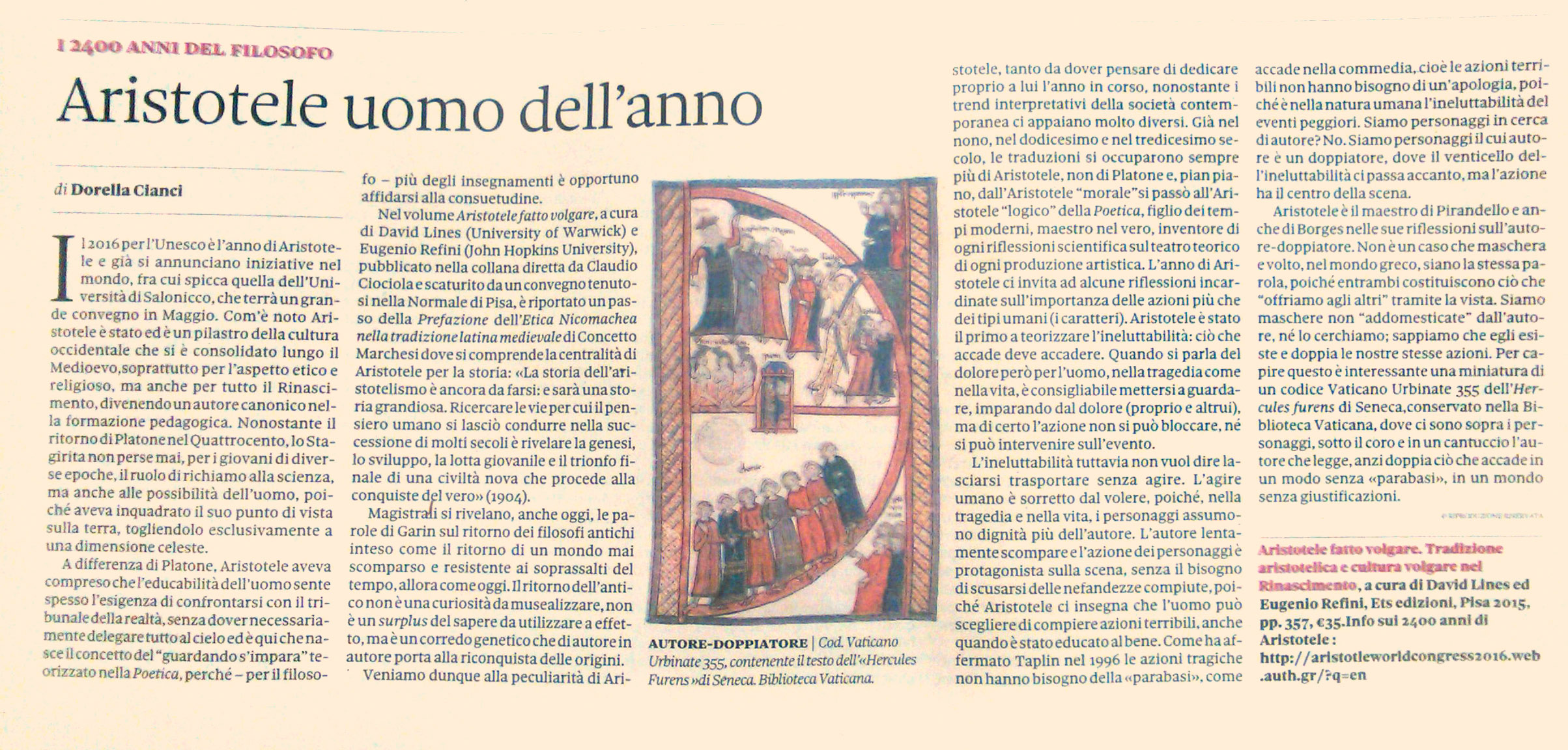 Quando nei primi anni Quaranta del Cinquecento Sperone Speroni rivendica l’urgenza di rendere accessibili nelle lingue volgari le opere della tradizione filosofica antica, l’idea stessa di un «Aristotele fatto volgare» continua a generare reazioni controverse, animate da posizioni contrastanti sui rapporti tra lingua e cultura, forma e contenuto. La traduzione del corpus aristotelico come strumento di divulgazione del sapere, fenomeno non estraneo ai secoli precedenti, si conferma nodo cruciale negli sviluppi delle culture linguistiche volgari. I saggi raccolti in questo volume, nati nell’ambito del progetto di ricerca “Vernacular Aristotelianism in Renaissance Italy” (University of Warwick e Warburg Institute di Londra), affrontano aspetti diversi dell’Aristotelismo in volgare tra Medioevo e prima età moderna: dai complessi intrecci che caratterizzano la tradizione testuale dei volgarizzamenti due e trecenteschi di Aristotele alla riflessione del Rinascimento maturo sulla possibilità di una traduzione “umanistica” in volgare del corpus aristotelico; dalle implicazioni storico-linguistiche del fenomeno alla dimensione ideologico-politica del fare filosofia in volgare. Nell’ottica di una più completa messa a fuoco dei problemi affrontati, il volume include contributi sulle vicende dell’Aristotelismo volgare in Francia e Spagna tra Quattro e Cinquecento.