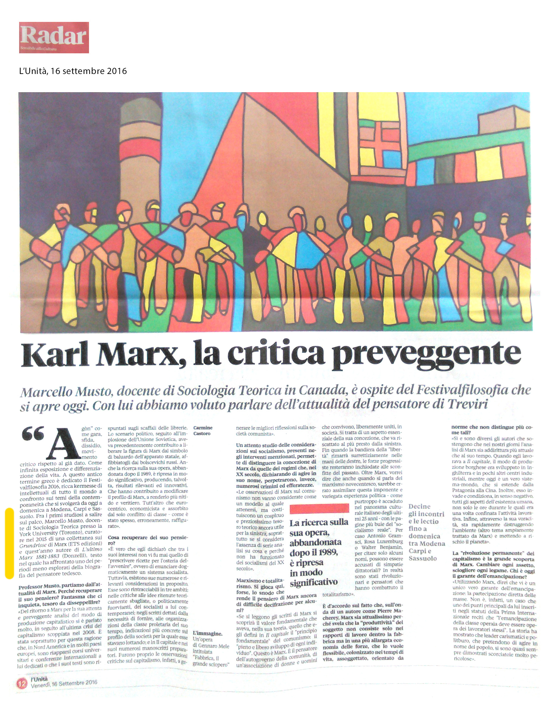 Marcello Musto insegna Sociologia Teorica presso la York University (Toronto). Tra le sue numerose pubblicazioni, tradotte in 18 lingue, figurano le monografie Ripensare Marx e i marxismi (Carocci, 2011) e Another Marx: An Essay in Intellectual Biography (Bloomsbury, in uscita nel 2016); il volume collettaneo Marx for Today (Routledge, 2012); e l’antologia Lavoratori di tutto il mondo, unitevi! (Donzelli, 2014).