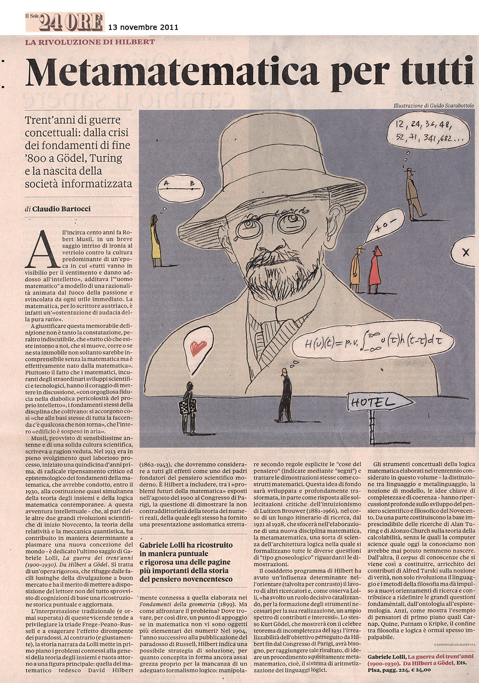 Gabriele Lolli (Camagna AL, 1942) insegna Filosofia della matematica presso la Scuola Normale Superiore di Pisa. Si è dedicato alla teoria degli insiemi, alle applicazioni della logica all'informatica, e sempre più intensamente negli anni alla filosofia della logica e della matematica. Tra le sue pubblicazioni recenti segnaliamo: Da Euclide a Gödel, il Mulino, 2004; QED. Fenomenologia della dimostrazione, Bollati Boringhieri, 2005; Sotto il segno di Gödel, il Mulino, 2007; Discorso sulla matematica. Una rilettura delle Lezioni americane di Italo Calvino, Bollati Boringhieri, 2011.