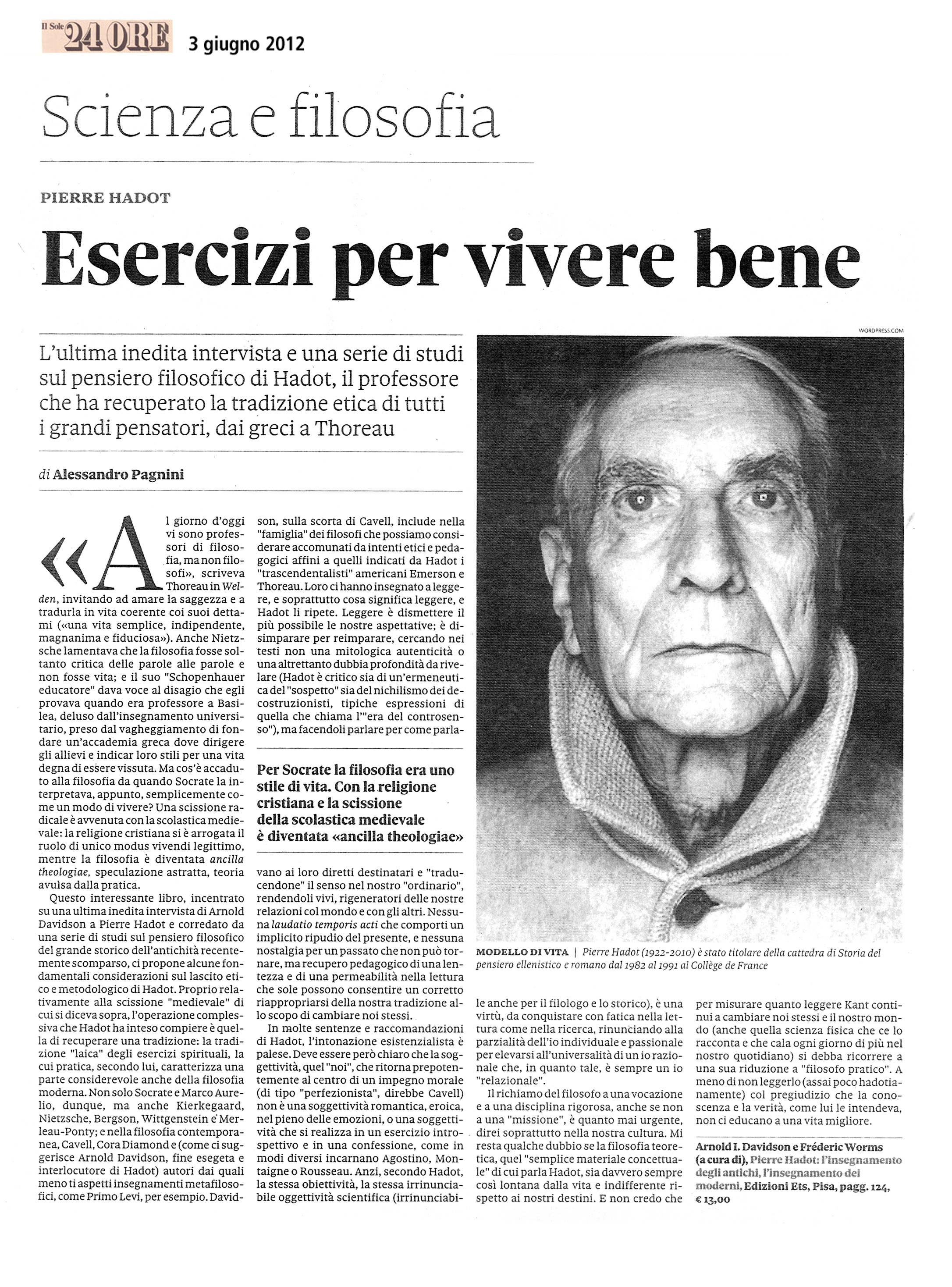 Grazie alle idee di “esercizi spirituali” e di filosofia come “modo di vita”, Pierre Hadot ha profondamente rinnovato la nostra comprensione dei testi classici e, in generale, della filosofia antica.