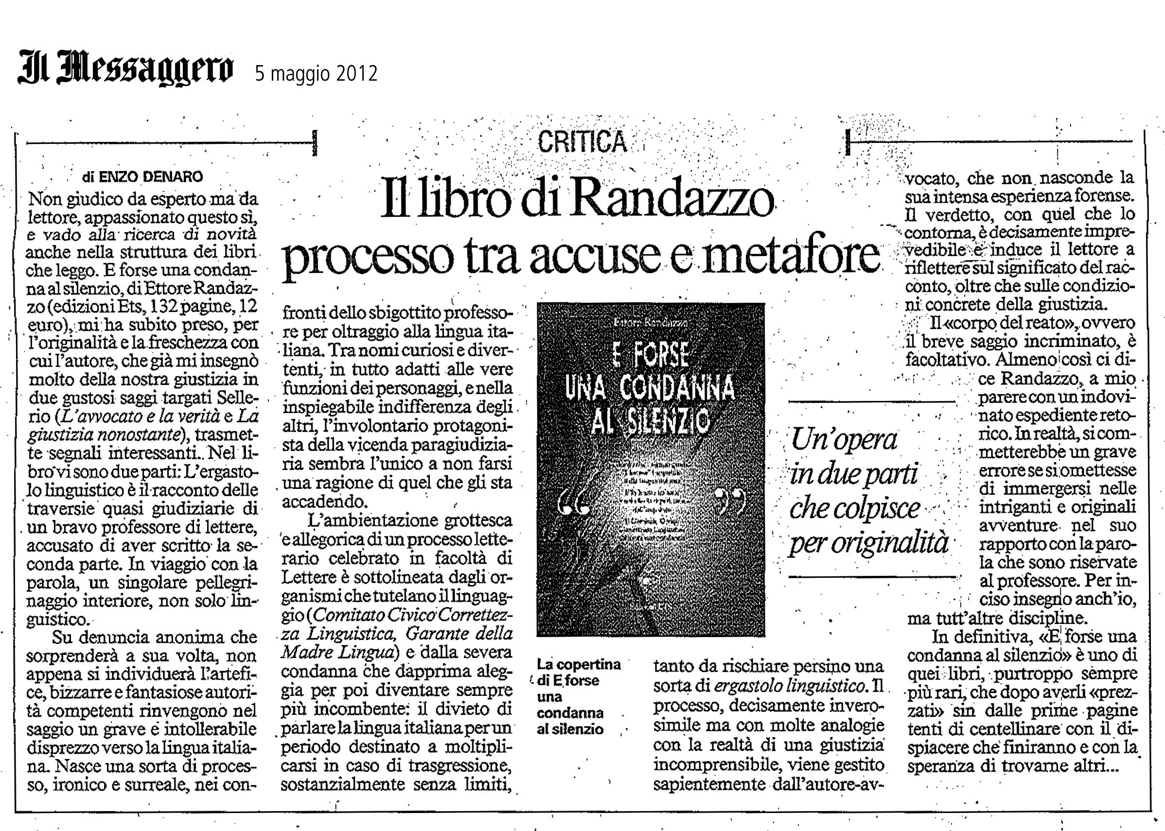 È un romanzo dai tratti surreali. Franco Eremita, un tranquillo professore di lettere, viene denunciato da speciose autorità competenti per aver scritto un saggio a loro dire sprezzante e blasfemo della lingua italiana. Il protagonista rischia così una severa condanna: il divieto di parlare la lingua italiana per un periodo destinato a moltiplicarsi in caso di trasgressione, sostanzialmente senza limiti, tanto da rischiare persino una sorta di ergastolo linguistico.