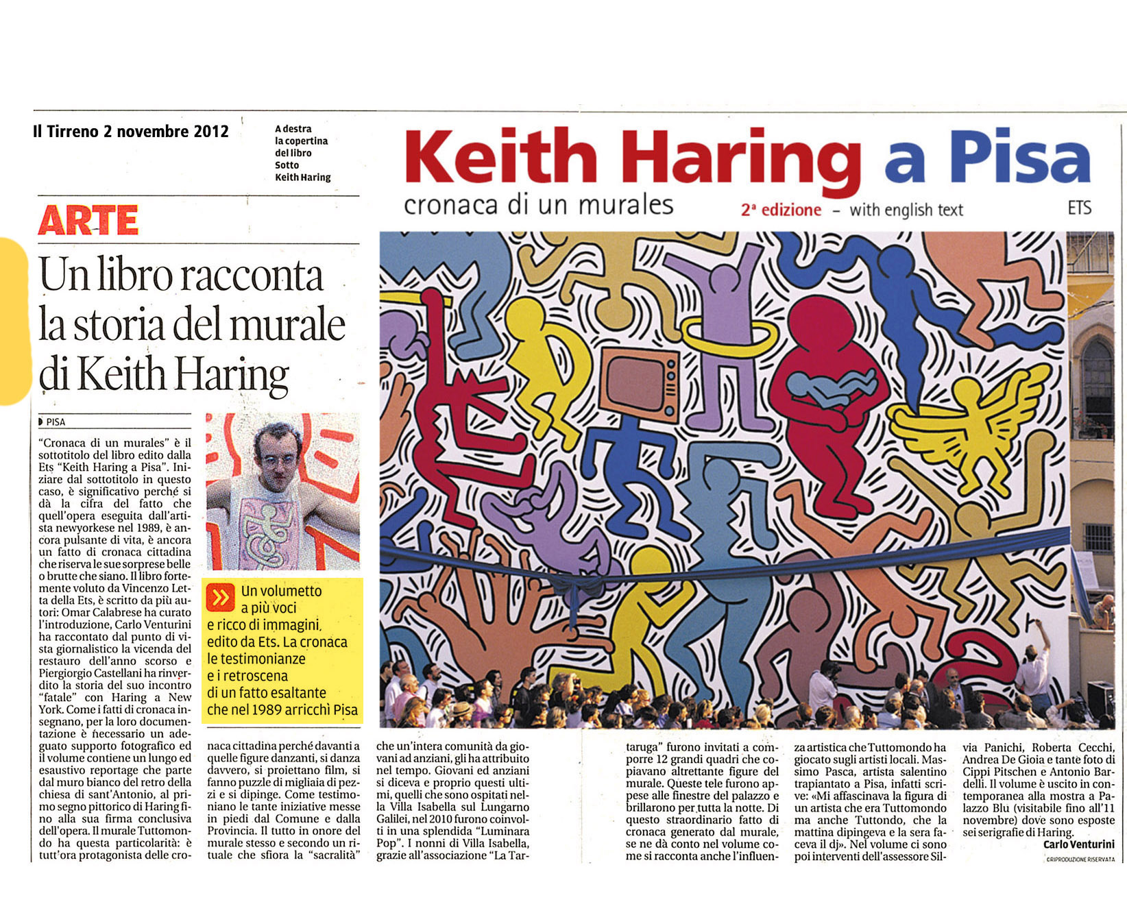 ITA-ENGLISH text con testi di: Roberta Cecchi, Piergiorgio Castellani, Carlo Venturini, Andrea De Gioia fotografie: Antonio Bardelli e Cippi Pitschen Nel giugno del 1989, sulla parete posteriore della Chiesa di Sant’Antonio di Pisa, il grande artista newyorchese Keith Haring realizzava l’ultima opera pubblica della sua vita, il murales Tuttomondo. Il libro vuole raccontare la realizzazione di quell’opera, e rendere un simbolico omaggio a Haring e al suo murales, da molti ritenuto un testamento spirituale. Questa seconda edizione viene ulteriormente arricchita attraverso una panoramica di eventi e situazioni che raccontano come la città di Pisa vive il murales. Dalle contaminazioni artistiche agli interventi di protezione, dagli happening musicali e multimediali all’intervento di restauro, fino all’intitolazione a Haring della piazza dove si trova il murales. In June 1989, on the rear wall of the convent of the Church of Sant’Antonio in Pisa, the great New York artist Keith Haring created the last public work of his life, the mural Tuttomondo. This book recounts how the work was done as a way of honouring Haring and his mural, thought by many to be his spiritual testament. This second edition has been supplemented with an overview of events and situations illustrating the relationship that has developed between the city of Pisa and the mural. They range from artistic offshoots to safeguarding measures, musical and multimedia happenings to the restoration project, up to the re-naming of the piazza where the mural is located in Haring’s honour.