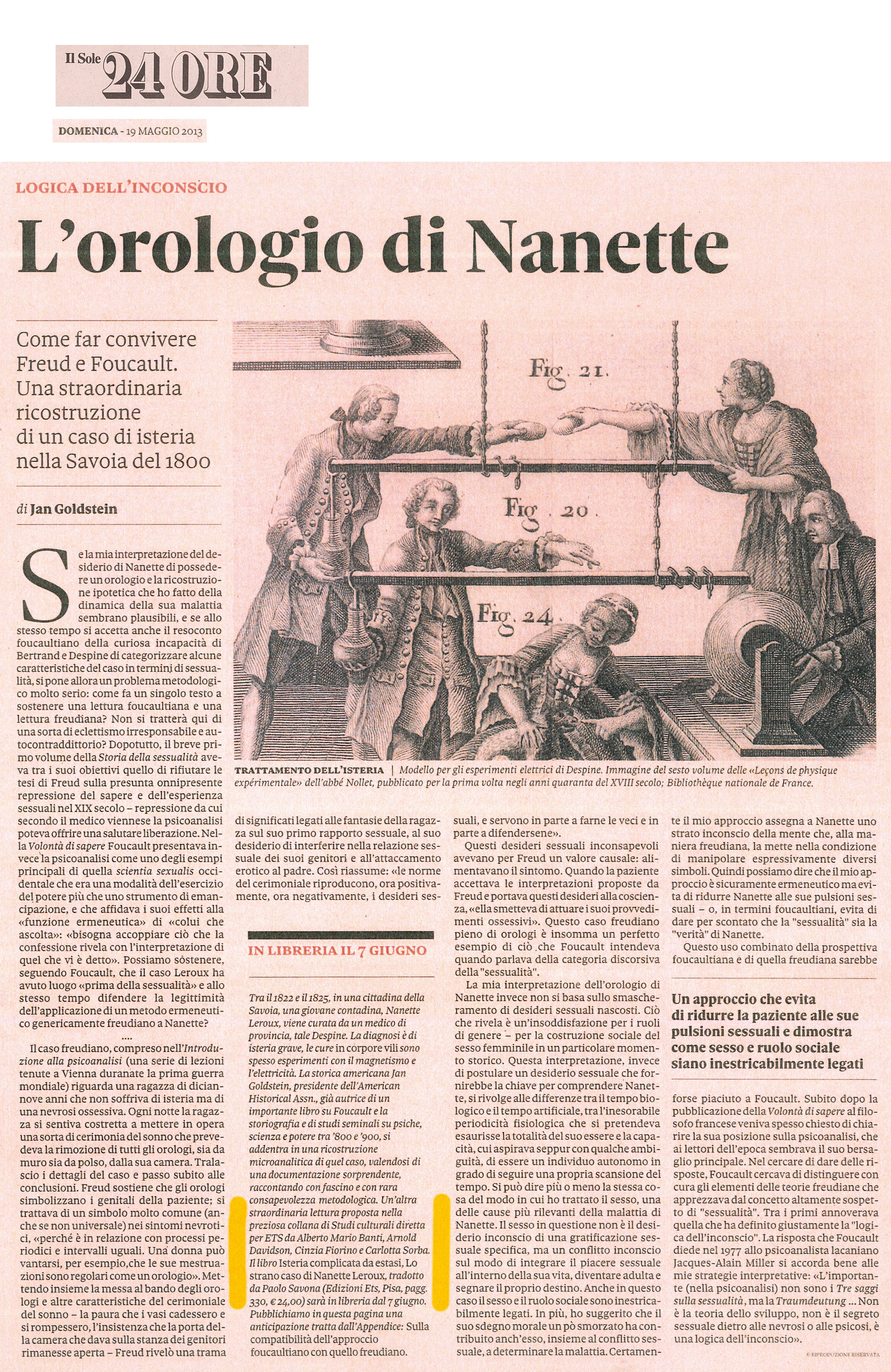 Confrontandosi con le riflessioni di Freud e di Foucault, ma sensibile anche all'esistenza soggettiva della protagonista, Jan Goldstein ci restituisce così un piccolo gioiello storiografico, nonché un capitolo importante di storia sociale europea, di storia di genere e di epistemologia storica della medicina.