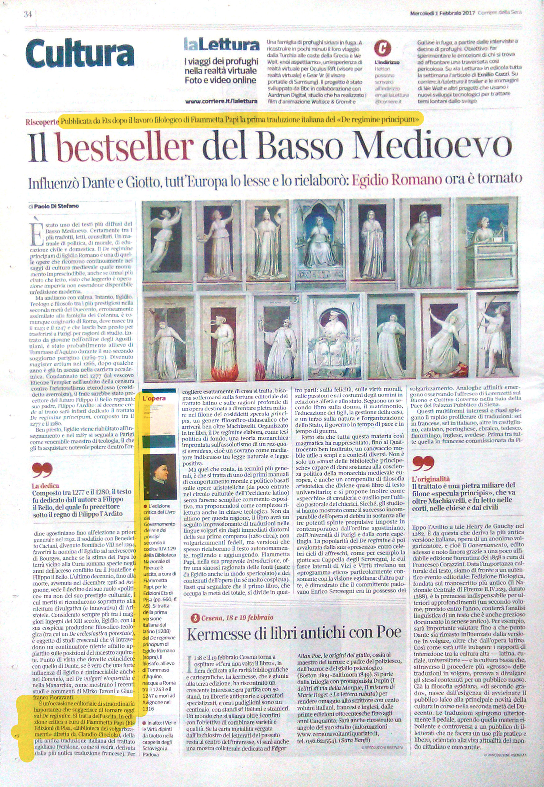 Composto da Egidio Romano intorno al 1280, e dedicato al giovane erede al trono di Francia (il futuro Filippo IV il Bello),il De regimine principum è una delle opere più fortunate del basso Medioevo. Il trattato, suddiviso in tre libri rispettivamente dedicati alla disciplina dell’individuo (l’etica), della casa (l’economica) e dello stato (la politica), fu tra i primi specula principis occidentali a essere esplicitamente basato sulle opere di Aristotele.