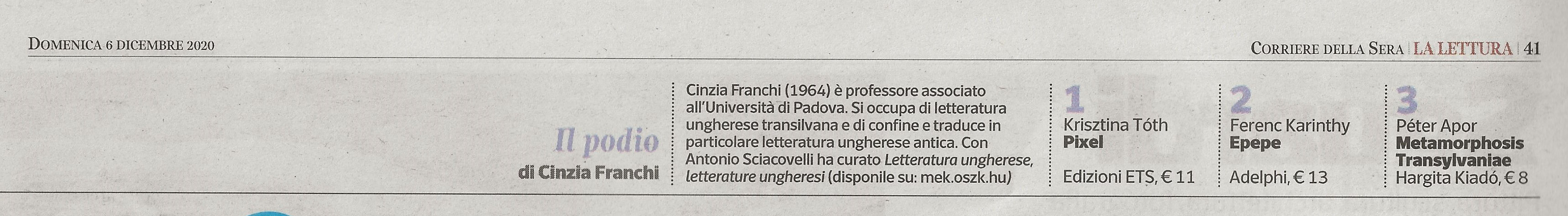 Mariarosaria Sciglitano, traduttrice dall'ungherese, giornalista culturale, già lettrice d'italiano all'Università Corvinus di Budapest, città in cui è vissuta per quasi trent’anni. Ha conseguito un riconoscimento per la traduzione alla Frankfurter Buchmesse nel 1999 e il Premio Tibor Déry nel 2018 per l’attività di traduttrice, che continua a svolgere per case editrici italiane e straniere. Attualmente vive e lavora fra Napoli e Budapest. www.eurolettera.org