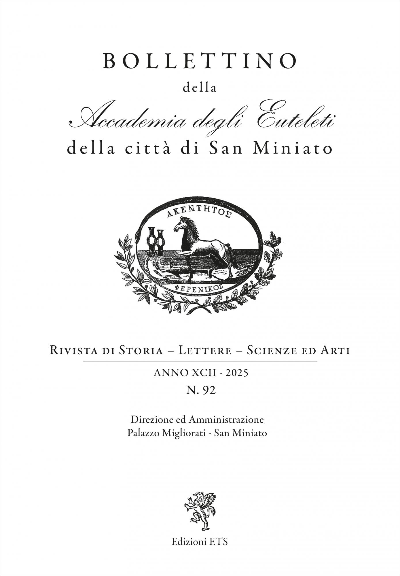 Saggi di: Stefano Atzori, Antonella Bertini, Silvia Bolgherini, Anna Braschi, Claudio Casini, Costantino Ceccanti, Mattia Ciani, Giovanni Cipriani, Giovanni Coppola, Michele Fiaschi, Francesco Fiumalbi, Rita Forsi Gamucci, Roberto Giovannelli, Alessandro Grassi, Riccardo Guarino, Lamia Hadda, Marco La Rosa, Carlotta Lenzi Iacomelli, Massimo Lippi, Alberto Malvolti, Leonardo Micheletti, Rossano Nistri, Susanna Pietrosanti, Stefano Renzoni, Nicola Schiavone, Fabio Sottili.