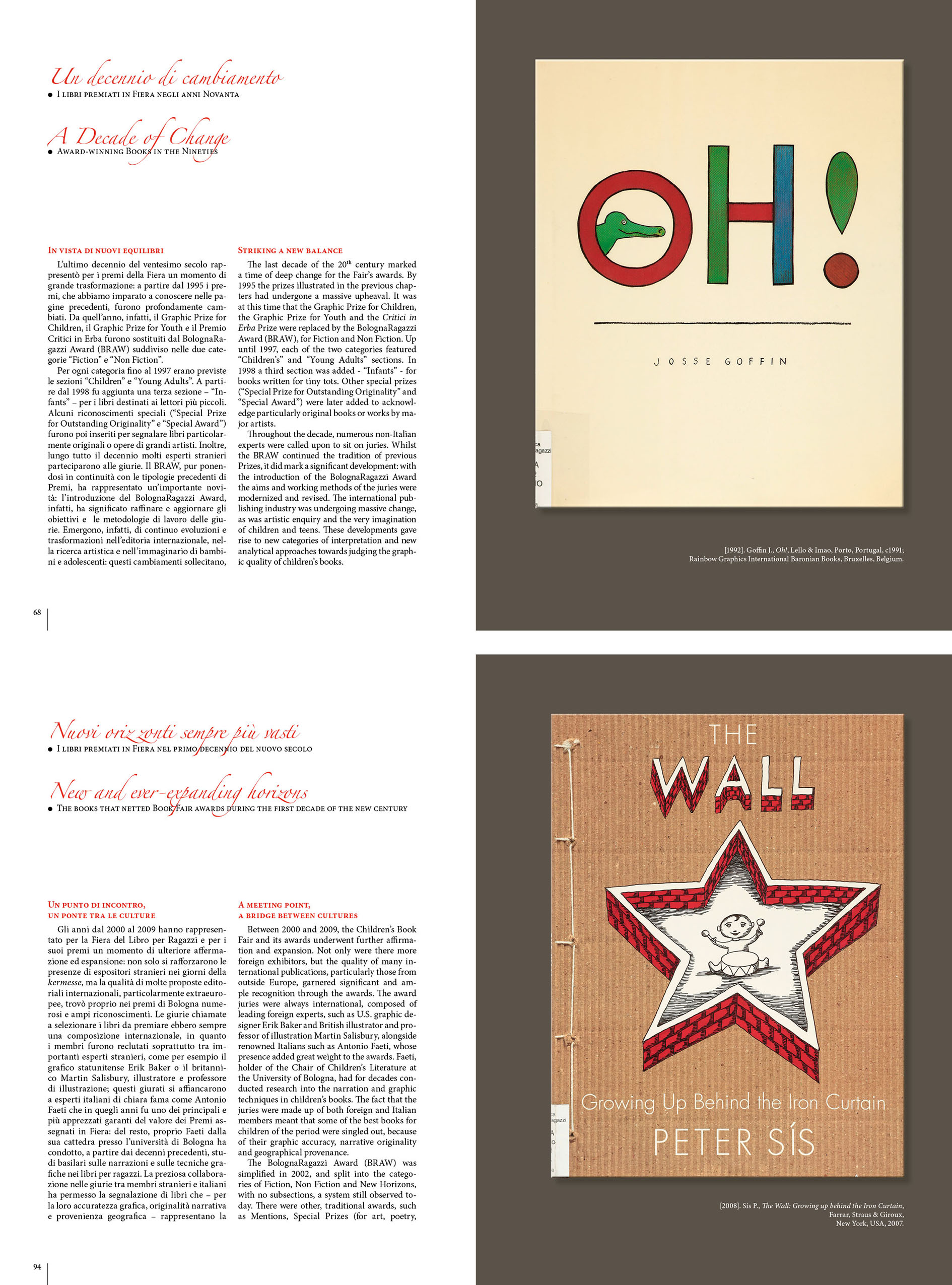 Graphic art and illustration have always been two fundamental aspects of book publishing. They have lent colour and form to the avant-garde aesthetics, social changes and cultural transformations taking place down the years. This book - result of in-depth historical and critical research - looks at just how graphic art, art and culture interrelate, and does so through the prism of the huge collection of prize-winning books of the Bologna Children’s Book Fair over the last fifty years. The Magic Showcase displaying the volumes from all corners of the world to receive awards or special mentions from discerning international juries, not only testifies to the way publishing, literature and graphic art for young people have developed. It is also a privileged vantage point from which to observe the history of the collective imagination.