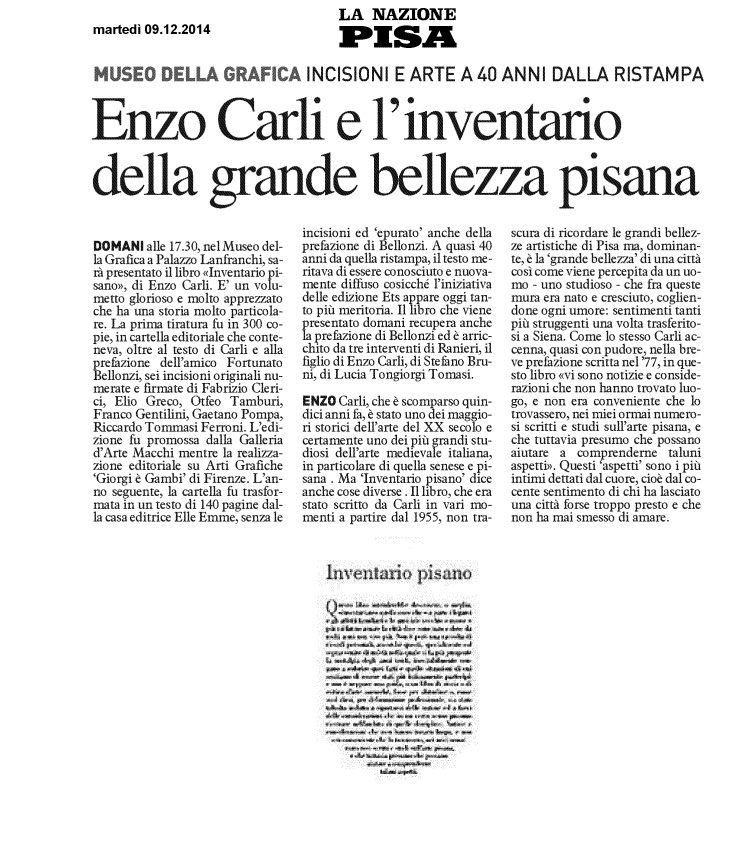 "Questo libro intenderebbe descrivere, o meglio, «inventariare» quelle cose che – a parte i legami e gli affetti familiari e le amicizie vecchie e nuove – più mi fanno amare la città dove sono nato e dove da molti anni non vivo più. Non è però una raccolta di ricordi personali, ancorché questi, specialmente col sopravvenire di un’età nella quale si fa più pungente la nostalgia degli anni verdi, inevitabilmente vengano a colorire quei fatti e quelle situazioni di cui sentiamo di essere stati più intimamente partecipi: e non è neppure una guida, o un libro di storia o di critica d’arte ancorché, forse per abitudine o, come suol dirsi, per deformazione professionale, sia stato talvolta indotto a riportarvi delle notizie ed a farvi delle considerazioni che in un certo senso possono rientrare nell’ambito di quelle discipline. Notizie e considerazioni che non hanno trovato luogo, e non era conveniente che lo trovassero, nei miei ormai numerosi scritti e studi sull’arte pisana, e che tuttavia presumo che possano aiutare a comprenderne taluni aspetti."