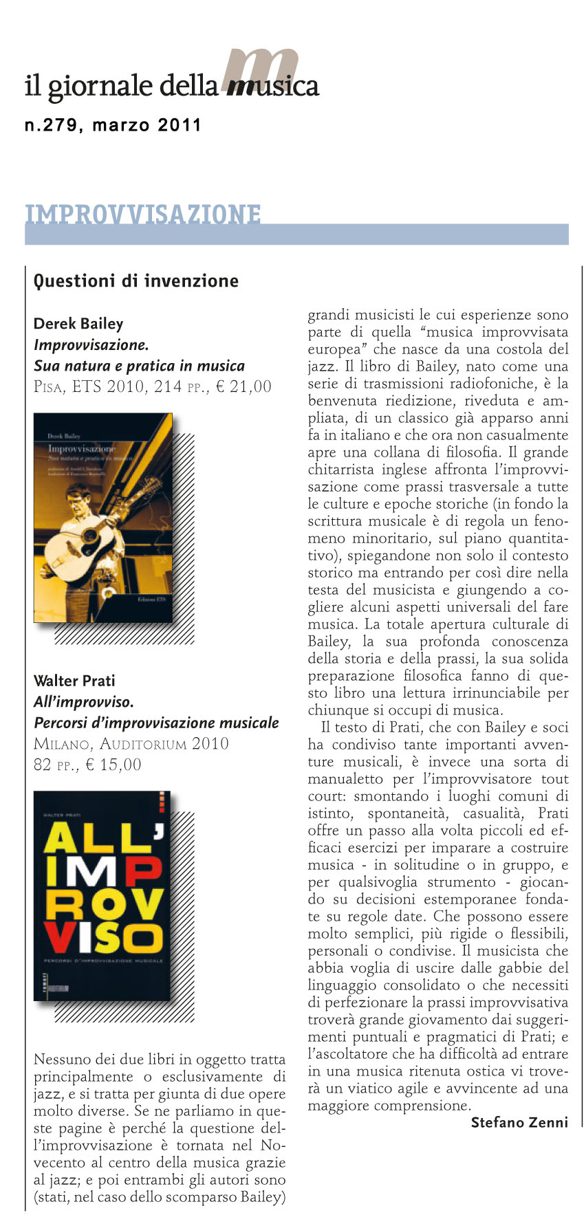 Improvvisazione viene oggi presentato in un'edizione rivista e aggiornata ed è inserito in una collana che, in modo innovativo ed eterodosso, guarda all'improvvisazione in musica come ad una pratica filosofica a tutti gli effetti. «In fin dei conti - si legge nella prefazione al libro - l'improvvisazione, per chi suona e per chi ascolta, è una trasformazione del mondo e di noi stessi. È un esercizio che crea un nuovo universo acustico la cui creazione rappresenta una nuova visione dell'organizzazione estetica, etica e politica delle nostre vite».