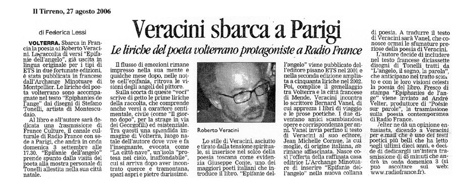 al pittore Stefano Tonelli (Come una guida dell’anima, 1992, Bandecchi e Vivaldi). Collaboratore di alcune riviste letterarie, nel 1993 è stato uno dei fondatori di Pioggia obliqua.