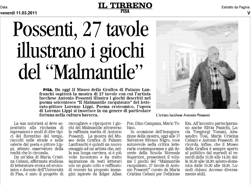 La presente edizione propone un originale connubio tra parti de Il Malmantile racquistato, poema erocomico di Lorenzo Lippi, e la maestria del grande pittore Antonio Possenti, che ha illustrato queste rime con ventisette splendide tavole.