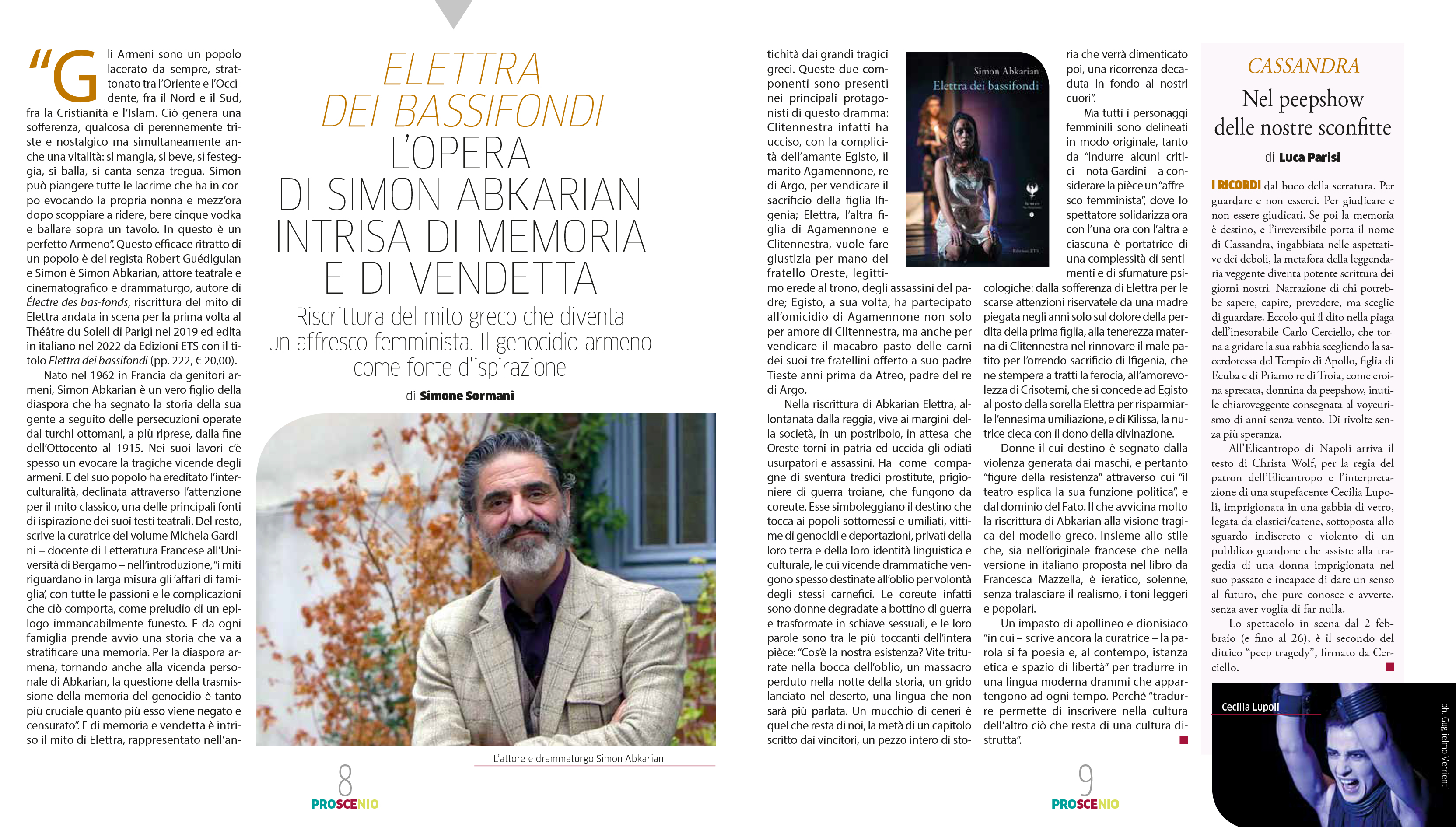 Elettra dei bassifondi è la prima traduzione italiana del capolavoro di Simon Abkarian Électre des bas-fonds, una riscrittura del celebre mito di Elettra in una veste moderna che pur conserva intatto il fascino dell’antica tragedia attica.