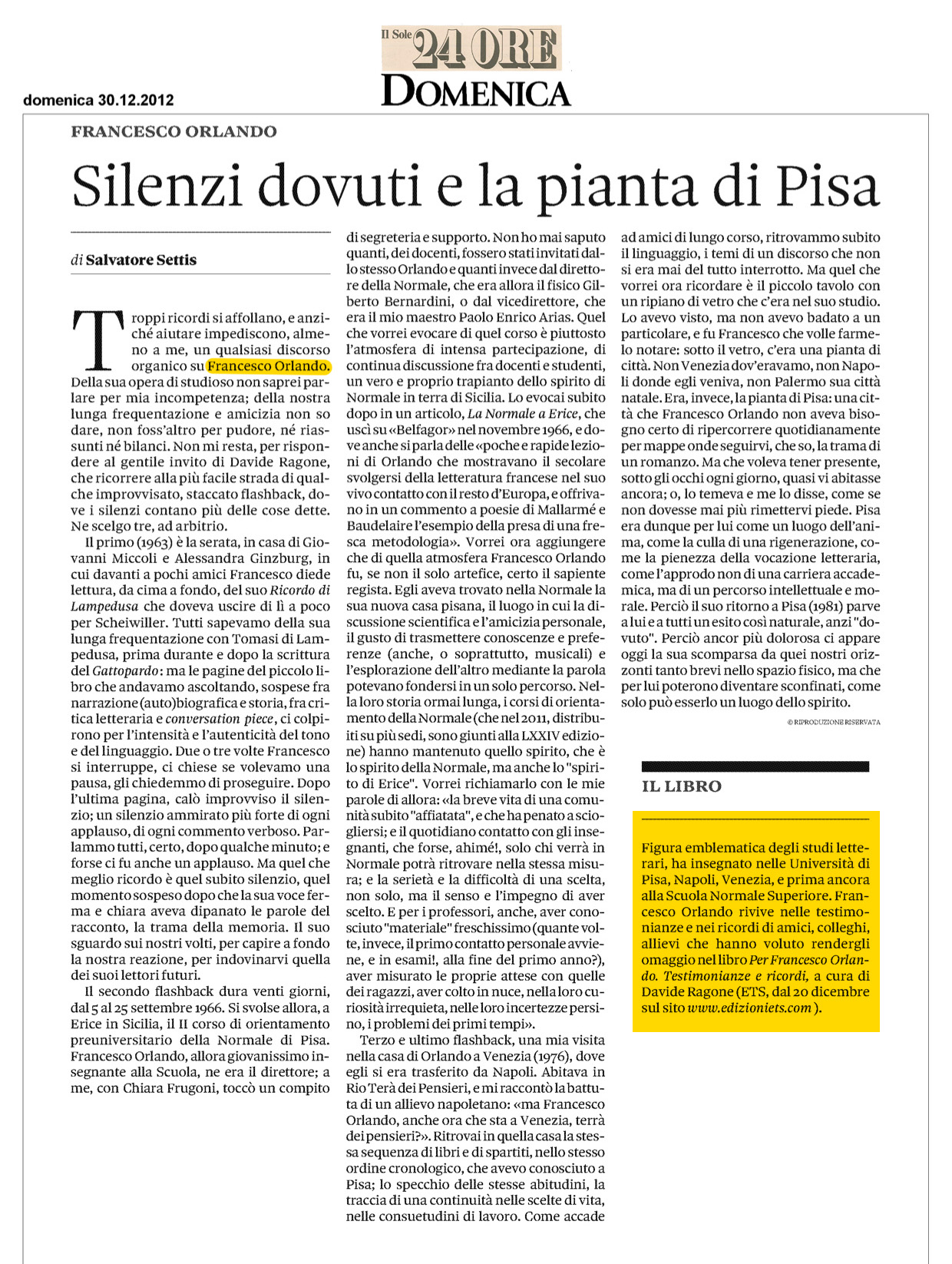Con lo scritto "A che cosa serve la letteratura" di Francesco Orlando e la sua ultima intervista.