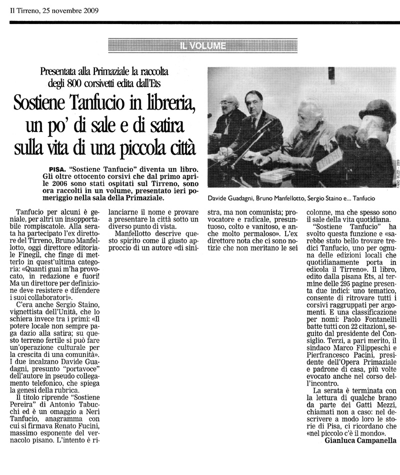 Da qualche tempo sulle pagine locali del Tirreno compare una piccola finestra. Tutto è cominciato nel marzo del 2006. Quando io e Bruno Manfellotto - pregiato giornalista allora direttore del giornale più letto dai pisani e non solo - ci siamo incontrati. Un appuntamento segreto nei sotterranei del Giardino Scotto, favorito e preparato nei minimi particolari da un grosso arcivescovo fiorentino.
