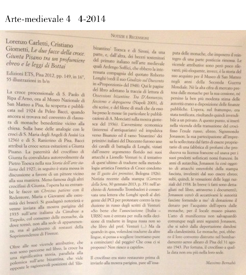 Pisa nel Ventennio. Un dipinto medievale riscoperto, improvvisamente assurto alla ribalta delle mostre internazionali. Un industriale ebreo di origine russa alle prese con autarchia e leggi razziali. Una vendita segreta, favorita da autoritą locali e nazionali, in barba alla legislazione vigente. Sono questi gli ingredienti di una vicenda che intreccia le sorti di una Croce dipinta, attribuita a Giunta Pisano, a quelle di un profumiere e della sua famiglia, oggetto delle persecuzioni antiebraiche. Sono anche le due facce di Giuseppe Bottai, estensore, assieme ad altri, dei terribili provvedimenti del 1938 e, un anno dopo, firmatario di una legge di tutela del patrimonio storico-artistico ancora oggi di straordinaria modernitą.