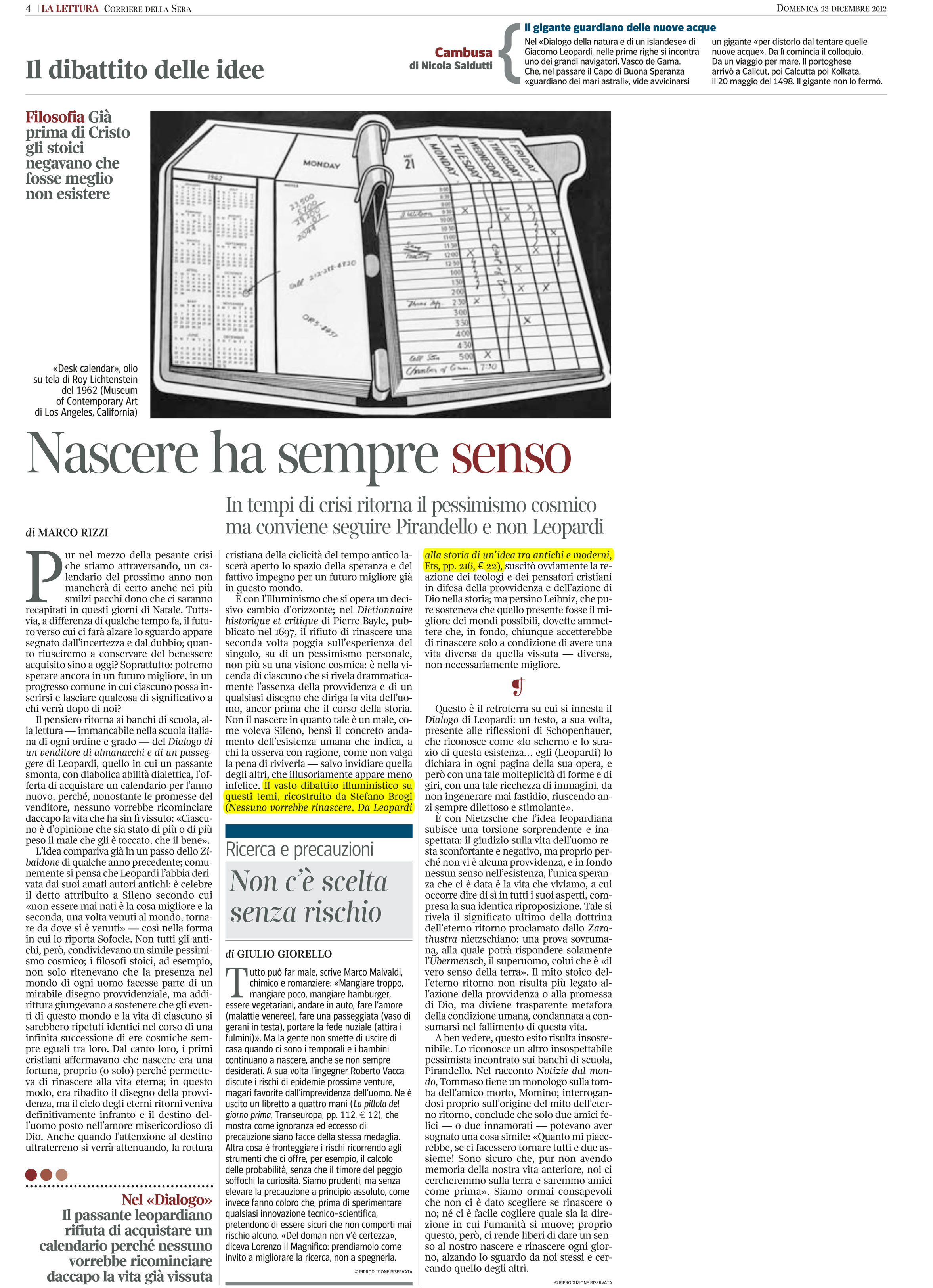 In questo libro si racconta la storia di un'idea che è legata al nome di Giacomo Leopardi, ma che in realtà nasce nell'antichità e giunge fino ai nostri giorni. Secondo il Dialogo di un venditore di almanacchi e di un passeggere "nessuno vorrebbe rinascere" se la condizione fosse di "riavere la vita di prima, con tutto il suo bene e il suo male", perché "ciascuno è d'opinione che sia stato più o di più peso il male che gli è toccato, che il bene". Questo bilancio pessimistico della vita umana è stato condiviso da moltissimi autori e ha suscitato accese discussioni dai complessi risvolti filosofici e esistenziali. Qui si ricostruisce per la prima volta questa lunga e misconosciuta vicenda, che riserva non poche sorprese e che pone a ciascuno di noi un interrogativo personale: ricominceresti?