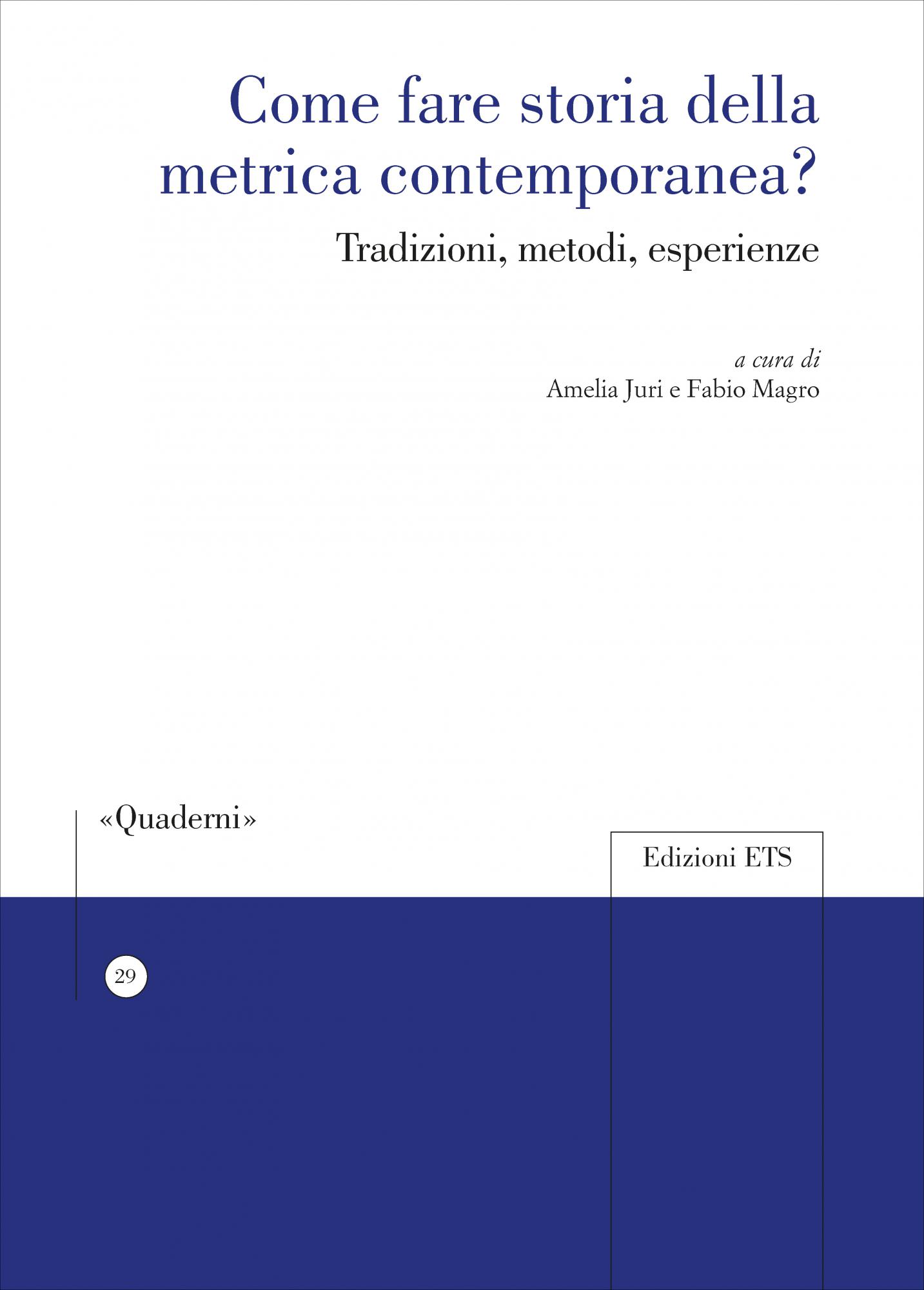 La metrica contemporanea rappresenta un terreno d’indagine assai vario e periglioso, che ancora attende una sistemazione organica, nonostante la fortuna critica di cui ha goduto negli ultimi vent’anni. Il volume affronta nodi storici, critici e metodologici a partire dall’analisi di casi concreti: la periodizzazione, l’aspetto mediale e grafico, la competenza, il rapporto tra metrica, stile e contenuto, fenomeni metrici puntuali, strategie di compenso, le dichiarazioni dei poeti stessi. L’obiettivo è infatti riflettere sulle condizioni di possibilità di un’operazione storiografica e sui metodi opportuni per inquadrare l’esperienza metrica novecentesca e attuale, assodata l’impossibilità di costruire una storia secondo i paradigmi classici, validi prima della nascita del verso libero. Oggetto dei saggi sono poeti quali Luzi, Sereni, Caproni, Cacciatore, Majorino fino a Dal Bianco e a poeti “commerciali”.