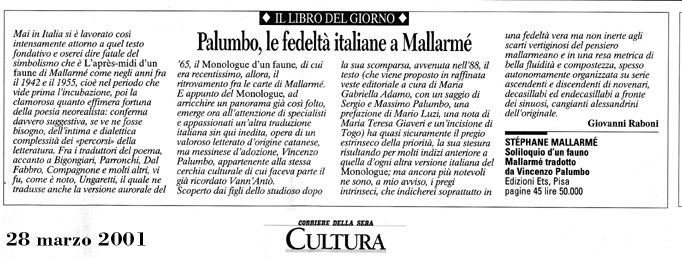 Attraverso i saggi di contorno al testo di Palumbo, la cui trascrizione dal manoscritto autografo è curata con rigoroso scrupolo filologico da Maria Gabriella Adamo, si coglie il fervido clima culturale dell'epoca e lo spirito del lavoro del traduttore, che "include – per dirla ancora con Luzi – il linguaggio degli ermetici e tende ad assumerlo come un dato e, insieme, a superarlo come un'eccezione ormai normalizzata".