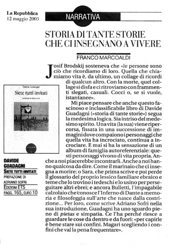 Un libro di sentimenti e di memoria. Ancora Sofri: “Sembra un film di Fellini. Davide ha scritto per la stessa ragione per la quale Fellini ha fatto i suoi film più belli: perchè si ricordava”.