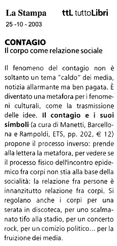 Il fenomeno del contagio delle malattie ha accompagnato la storia intera dell’umanità e ha prodotto come contraccolpo rappresentazioni simboliche di vario tipo (pittoriche, letterarie, culturali in genere). Da alcuni anni esso è stato anche assunto come modello euristico che alcune discipline (inizialmente la scienza cognitiva e l’antropologia) hanno considerato adeguato per spiegare i fenomeni di comunicazione in generale e quelli relativi ai fatti cosiddetti simbolici in particolare. La strada è stata percorsa, in forme originali e più o meno apertamente critiche rispetto alla prospettiva cognitivista, dalla semiotica, che ha più volte in questi anni messo al centro dei propri interessi le strategie contagiose che si istaurano tra attori sociali, le mode e i simboli socialmente trasmessi. I saggi presentati in questo volume offrono un quadro organico del punto di vista semiotico relativo al contagio, che viene qui proposto anche come categoria atta a superare il modello classico della disciplina, soprattutto nelle situazioni comunicative che chiamano in causa la dimensione della prensione estesica e del corpo.