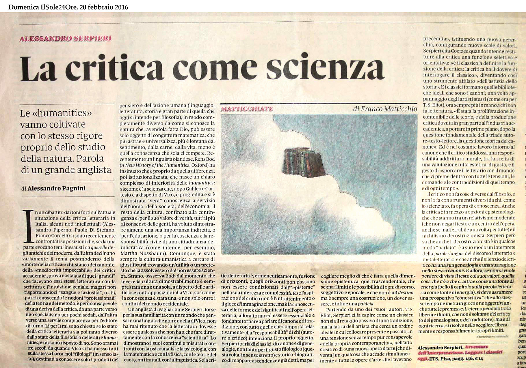Alessandro Serpieri, anglista e teorico della letteratura, è Professore Emerito nell’Università di Firenze. La sua vasta produzione di critico, traduttore, commentatore e curatore di testi spazia da Shakespeare e il teatro elisabettiano a Beckett e T.S. Eliot passando per John Donne, i Romantici, Conrad, G.M. Hopkins e numerosi altri. Prestigiosi i premi ricevuti per la sua attività traduttiva (Premio Mondello 1992, Premio Monselice 1998, Premio Grinzane 2009). Le sue molte versioni di drammi shakespeariani sono state messe in scena da alcune delle più importanti compagnie nazionali.
