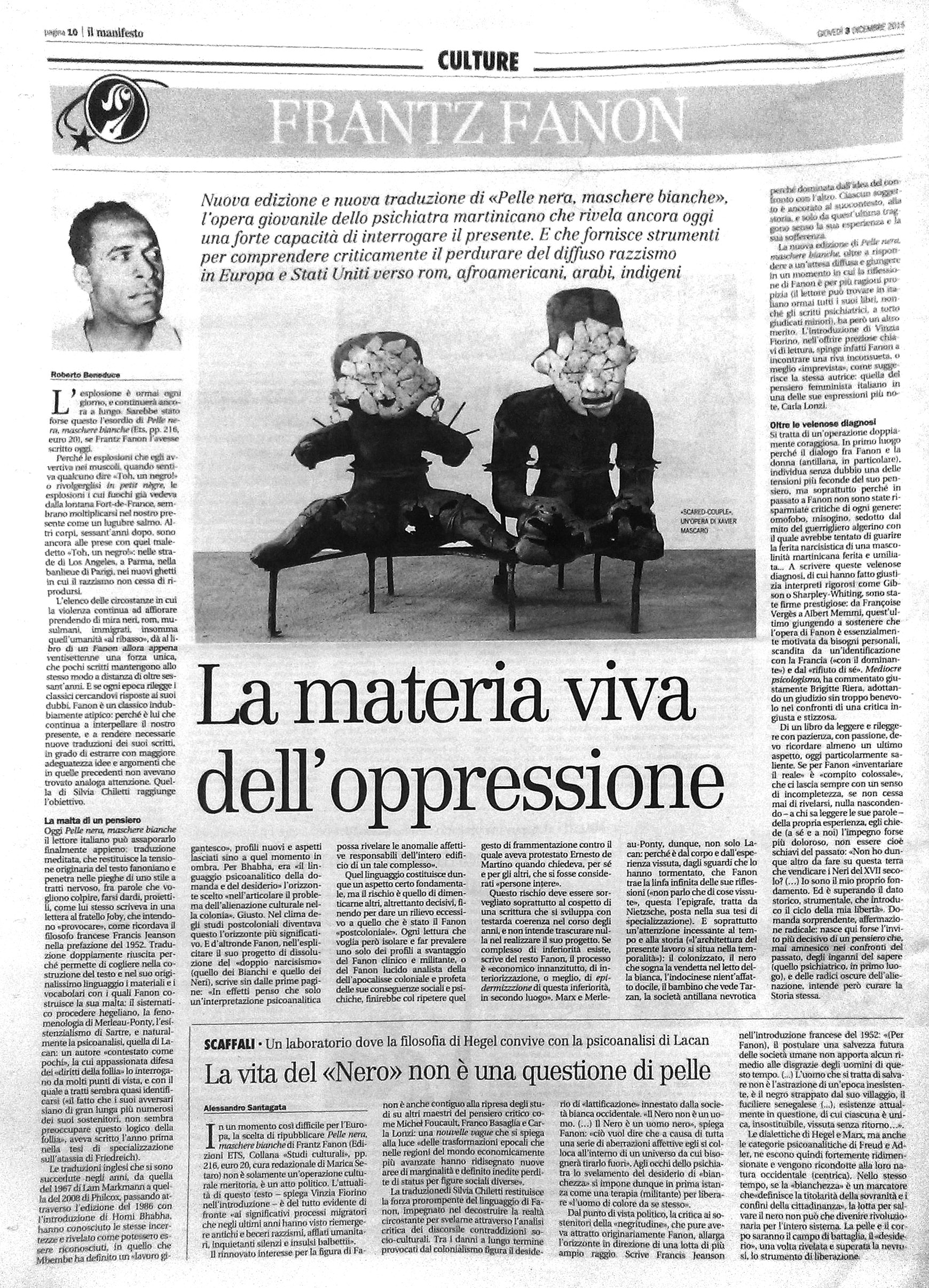 Scritto nel 1952, in pieno processo di decolonizzazione, questo saggio di Frantz Fanon analizza con rigore e finezza i meccanismi di oppressione politica e psicologica riservati all’uomo di colore. Una scrittura capace di restituire la fisicità delle sofferenze, una riflessione che si spinge fino a un obiettivo preciso: «liberare l’uomo di colore da se stesso». Liberarlo dal circolo infernale in cui lo sguardo bianco lo ha costretto, dal cuneo dell’inferiorità in cui lo ha incastrato. Libro dal valore profetico e di ribellione radicale, che non indugia sulle identità del “Negro”, che respinge la negritudine, che preferisce porre interrogativi a chi ripropone e impone le ragioni della separatezza e della gerarchia del colore. Questo capolavoro della letteratura del ’900 è ora disponibile in una traduzione aggiornata. Un saggio toccante, un’andatura stilistica che smuove le radici profonde del malessere attuale di fronte alla sfida delle alterità. VIDEO della presentazione (cliccare su "VIDEO"): 0:00:26 - apertura evento, Marica Setaro 0:04:10 - intervento Paolo Brogi: inizio presentazione 0:20:43 - intervento Dott.ssa Silvia Chiletti 0:35:30 - intervento Prof. Alfonso Maurizio Iacono 0:53:14 - intervento Prof.ssa Liana Borghi 1:14:19 - intervento Prof. Adriano Prosperi 1:42:45 - intervento Prof.ssa Vinzia Fiorino 1:55:08 - inizio dibattito