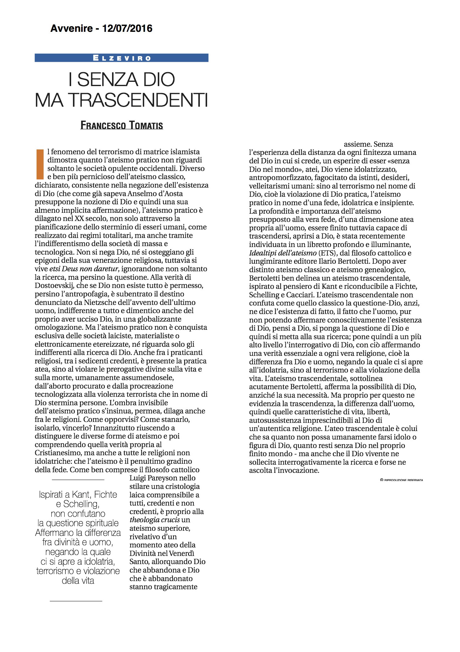 Se nel primo rientrano pensatori come Feuerbach, Marx, Freud, i neopositivisti e gli esponenti del neordarwinismo, nel secondo modello il riferimento è Nietzsche e la sua critica genealogica. Al terzo modello, che ha le sue ascendenze in Kant e nella disputa sull’ateismo che coinvolse Fichte, possono essere ricondotti pensatori contemporanei che si sono interrogati su ciò che sta prima di Dio: l’Aletheia, l’Inizio, l’Origine. Tra i filosofi, riconducibili a questo idealtipo, Heidegger. Un idealtipo le cui tracce, a volte inattese, sono anche in altri pensatori: Ricoeur, Levinas, Henry, Jaspers. Tra gli italiani: Cacciari, Natoli, Magris. Un paradigma dove il dialogo con la teologia è parte costitutiva dell’ indagine filosofica, perché in Dio, e nella sua possibile negazione, è in gioco la cosa stessa del pensiero.