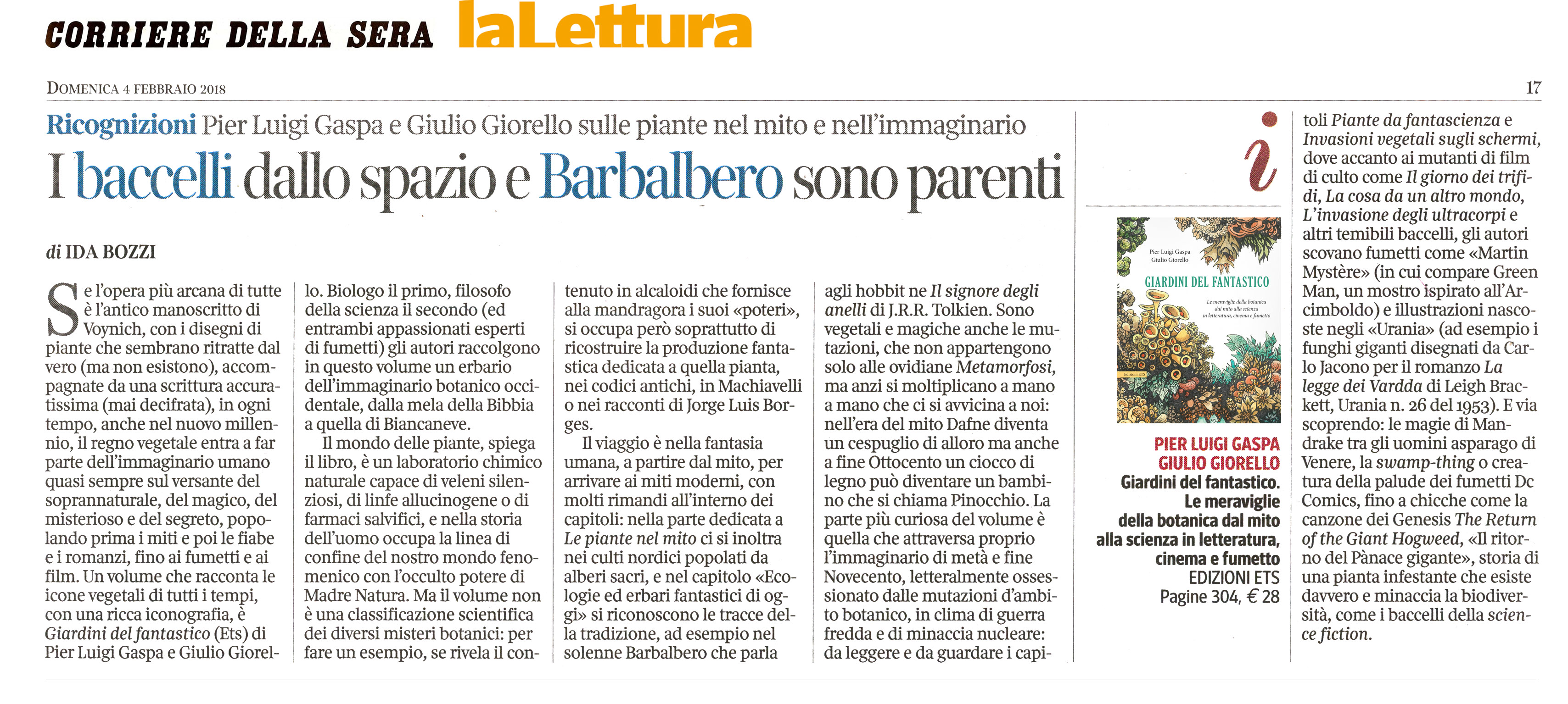 Un percorso immaginario e immaginifico che porta dal cinema ai fumetti e alla fantascienza, dai videogiochi ‘vegetali’ alle atmosfere da incubo di H. P. Lovecraft e perfino alla musica dei Genesis, Giardini del fantastico è un viaggio in dieci capitoli che ripercorre l’immagine, la simbologia e la scienza delle piante dall’antica Grecia a oggi e che si conclude con le proprietà straordinarie dei veri vegetali, dalla Venere acchiappamosche alla ‘pianta cadavere’ e con gli OGM, tutt’altro che “piante Frankenstein”. Per arrivare là dove nessun botanico è mai giunto prima!