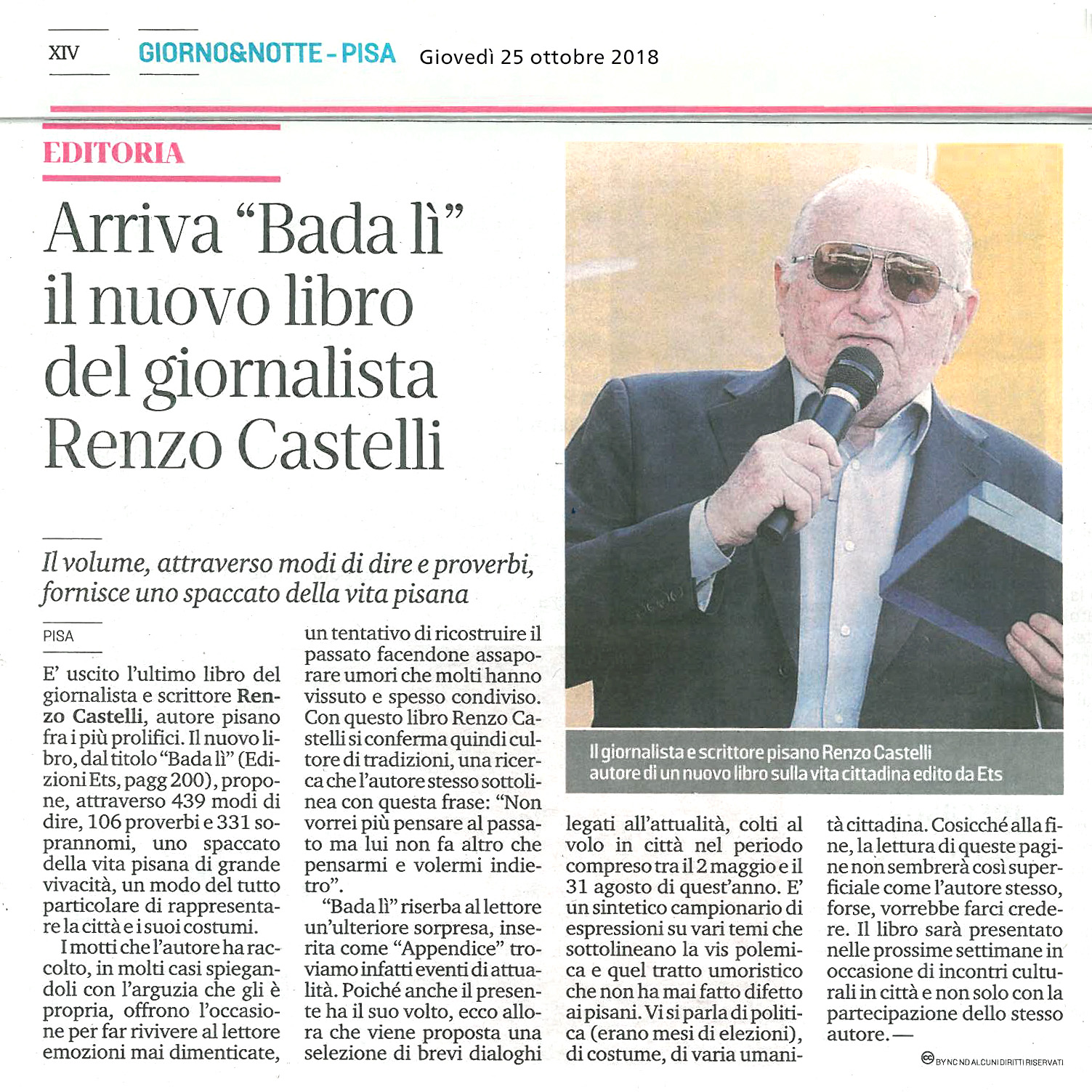 439 modi di dire, 106 proverbi, 331 soprannomi: è il modo di rappresentare la città scelto questa volta da Renzo Castelli, già autore di numerosi libri su Pisa, la sua storia, il suo costume.