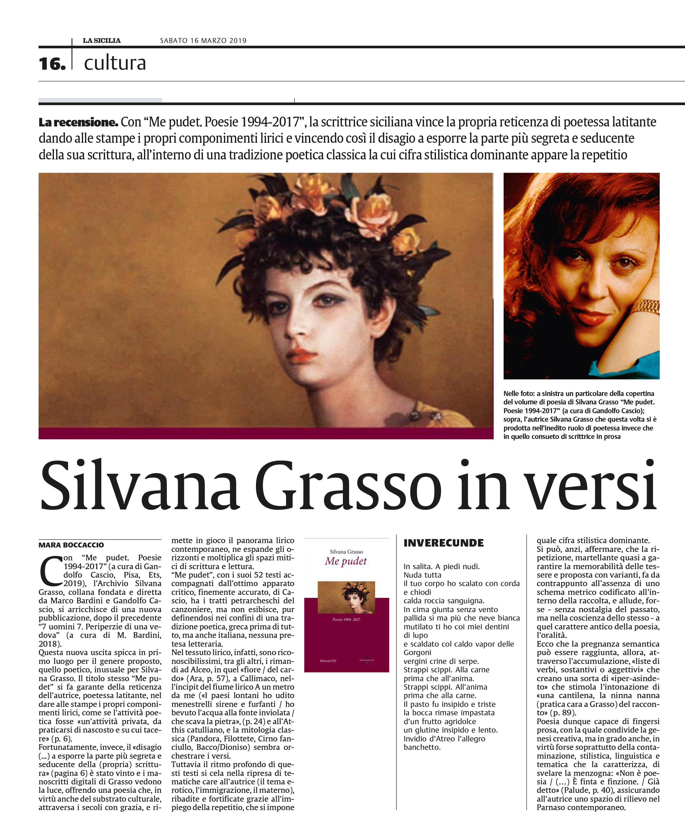 ETS ripropone ora nella collana «Archivio Silvana Grasso» alcune delle sue opere affidate a specialisti: il primo volume è stato 7 uomini 7. Peripezie di una vedova a cura di Marco Bardini (2018).