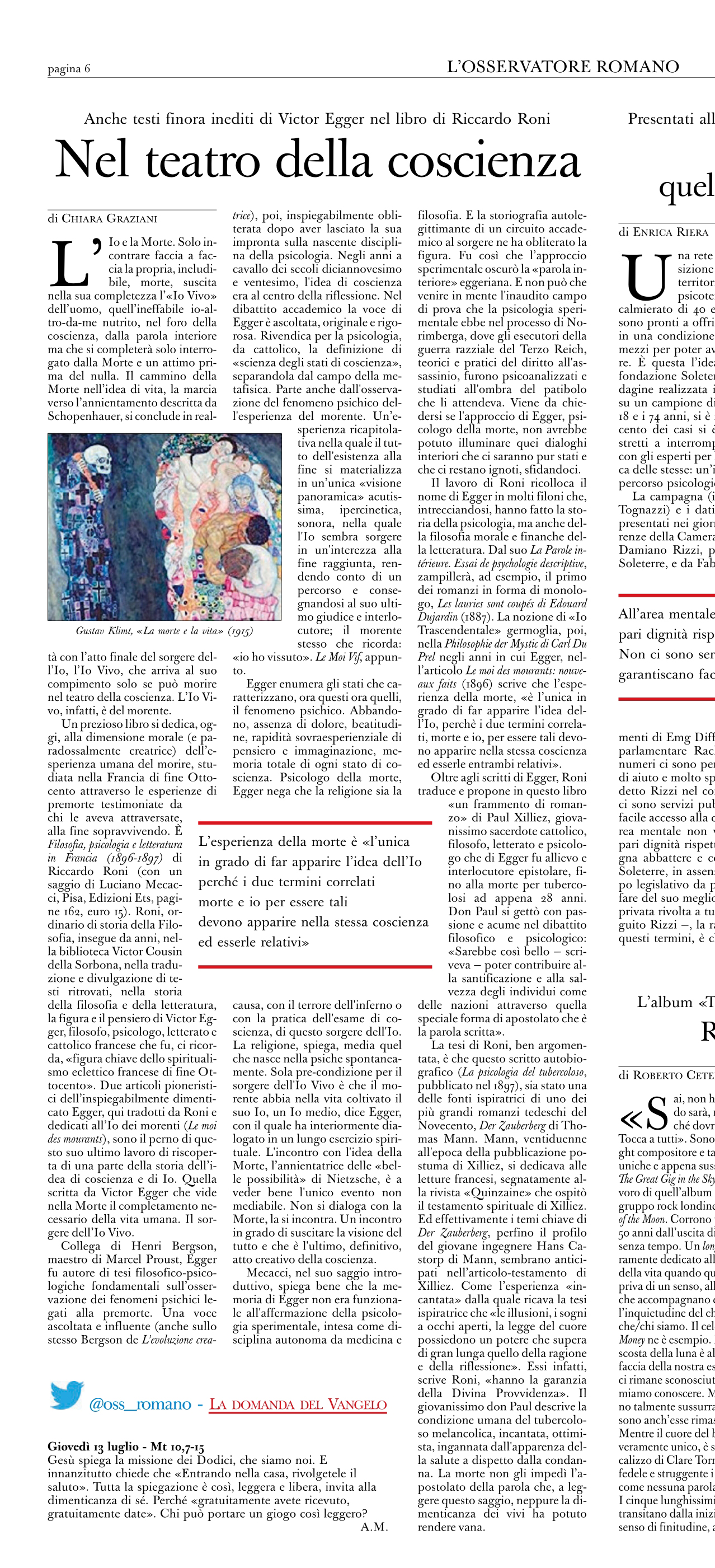 Questo volume – in cui si fa ampio uso di materiali inediti – è dedicato alla ricostruzione storica e teorica dei rapporti che intercorrono tra due figure chiave dell’ambiente accademico della Francia di fine Ottocento: Victor Egger (1848-1909) e il suo giovane allievo, Don Paul Xilliez (1868-1896). Il nucleo che viene preso in esame sulla scorta dei saggi introduttivi di Luciano Mecacci e di Riccardo Roni, riguarda le esperienze di premorte, ovvero quella «visione panoramica del morente» sulla quale si concentrano due fortunati articoli di Egger sull’Io dei morenti all’incrocio tra filosofia, psicologia e letteratura, pubblicati nel 1896 sulla Revue philosophique di Ribot. Entrambi i testi di Egger vengono presentati per la prima volta in traduzione italiana, seguiti dall’articolo postumo di Xilliez del 1897 sulla Psicologia del tubercoloso, dalla cui analisi emergono notevoli coincidenze con quanto Thomas Mann nei decenni successivi metterà a frutto nella Montagna magica. Ne fuoriesce uno studio storiografico e teorico che offre un contributo originale alla storia della filosofia e della psicologia, alla filosofia morale, fino ad aprire nuove linee di ricerca anche per la letteratura.